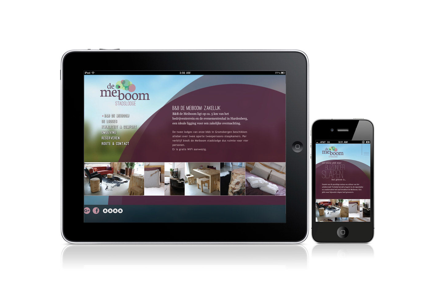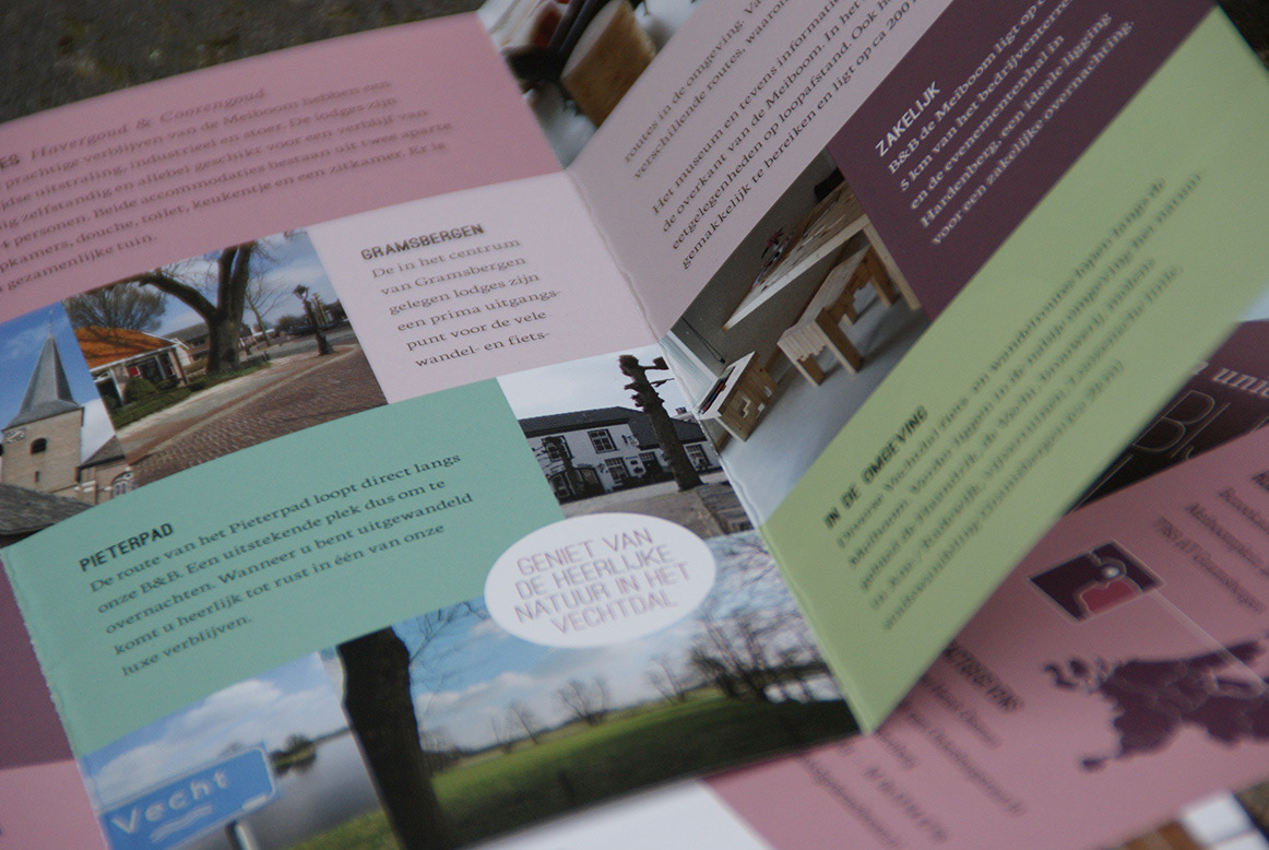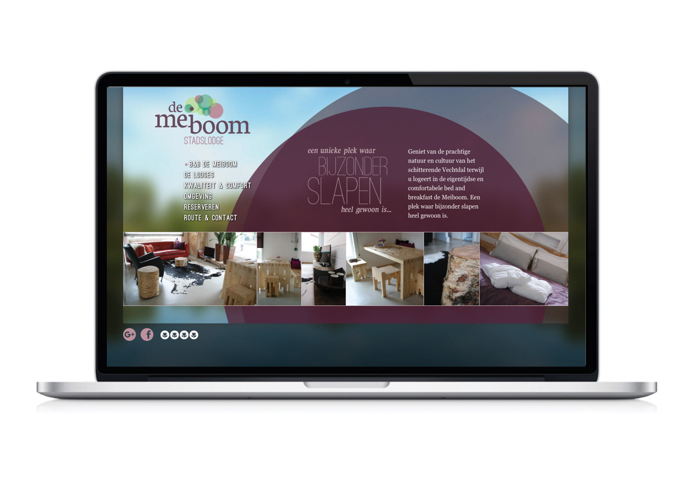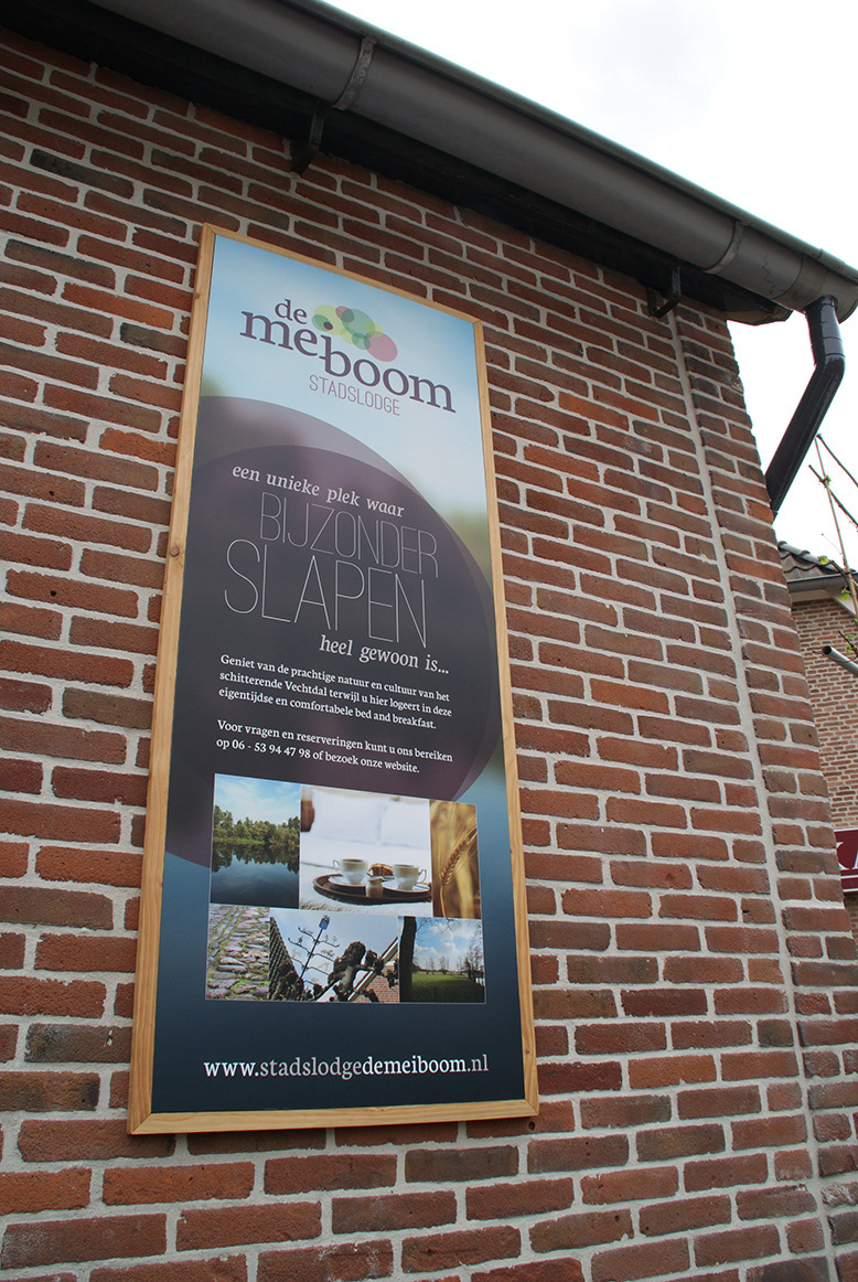 Concept en ontwerp visuele identiteit: logo, folder, website tot buitenreclame. Het ontwerp is gebaseerd op een (mei)boom. Het kleurgebruik sluit aan bij het eigen gezicht van de Meiboom stadslogdge, een B&B dat zich richt op het midden – hoger segment. Het resultaat is een sterke visuele identiteit, waarvan een gaaf logo ontwerp is toegepast op diverse uitingen.